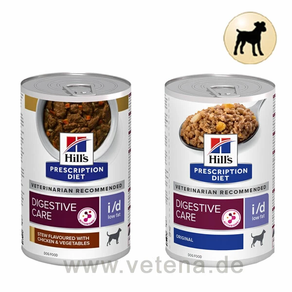 Hill’s Prescription Diet i/d Low Fat Hundefutter Original ist ein leicht verdauliches diätetisches Alleinfuttermittel zur Linderung akuter Resorptionsstörungen des Darms, als Ausgleich bei unzureichender Verdauung und bei exokriner Pankreasinsuffizienz bei erwachsenen Hunden.